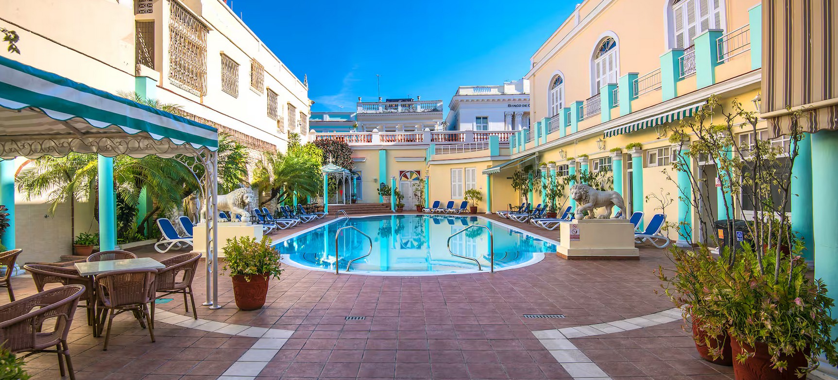 De todos los hoteles de Cienfuegos, el Meliá San Carlos es el preferido por aquellos que visitan Cuba. El elegante vestíbulo y los patios interiores te invitan a parar y disfrutar de tu tiempo en este elegante entorno. También ofrece impresionantes vistas de la bahía, así como instalaciones para eventos y pequeñas reuniones. Una opción que definitivamente no te debes perder mientras recorres la isla.