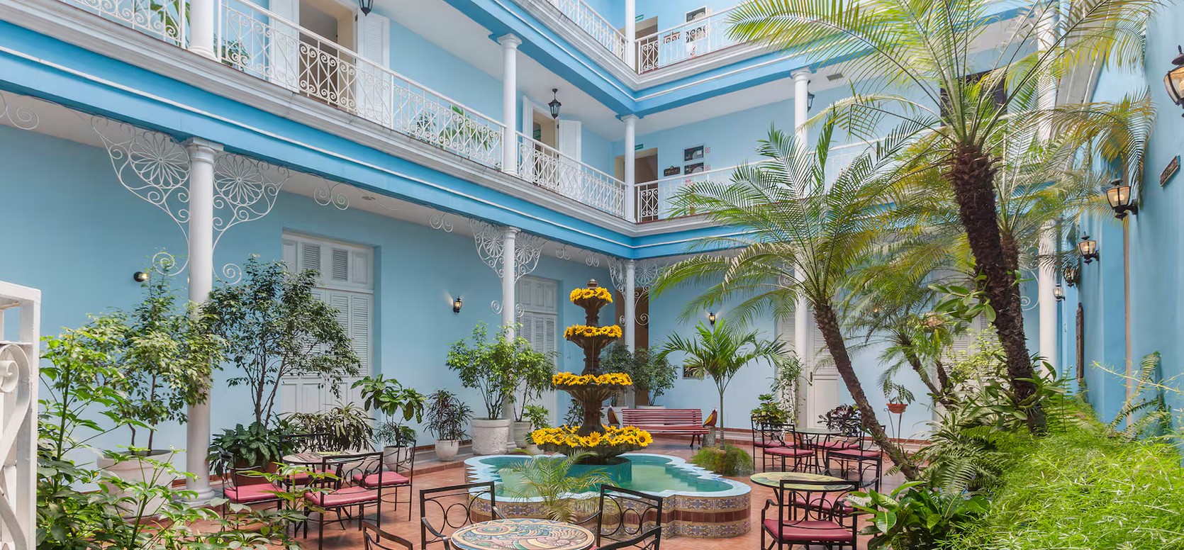 Un complejo hotelero de tres inmuebles boutique de gran valor patrimonial: Palacio Azul, Casa Verde y Casa Perla del Mar, asociados al Palacio de Valle. Ubicados en Punta Gorda, ofrecen espectaculares paisajes naturales y urbanos. Cerca del Centro Histórico de Cienfuegos, Patrimonio de la Humanidad por la UNESCO, son el alojamiento ideal para disfrutar de confort, cultura y tradición.